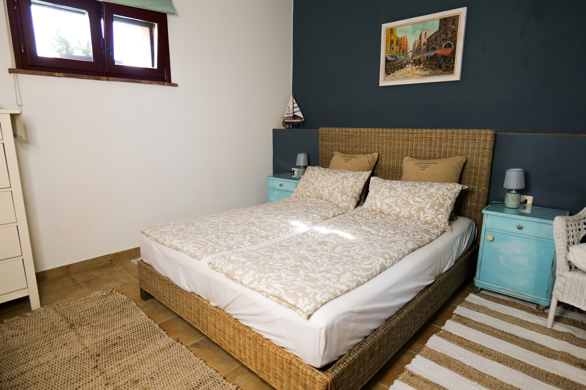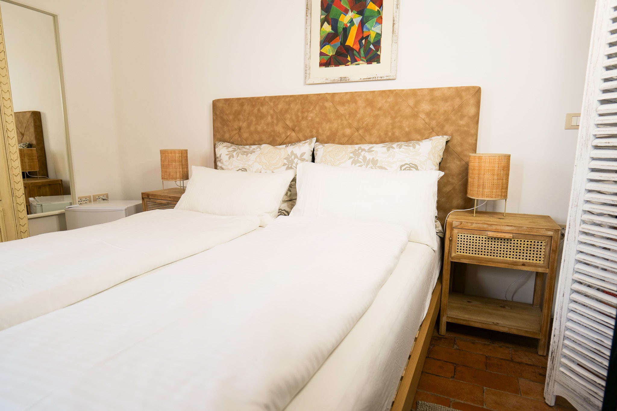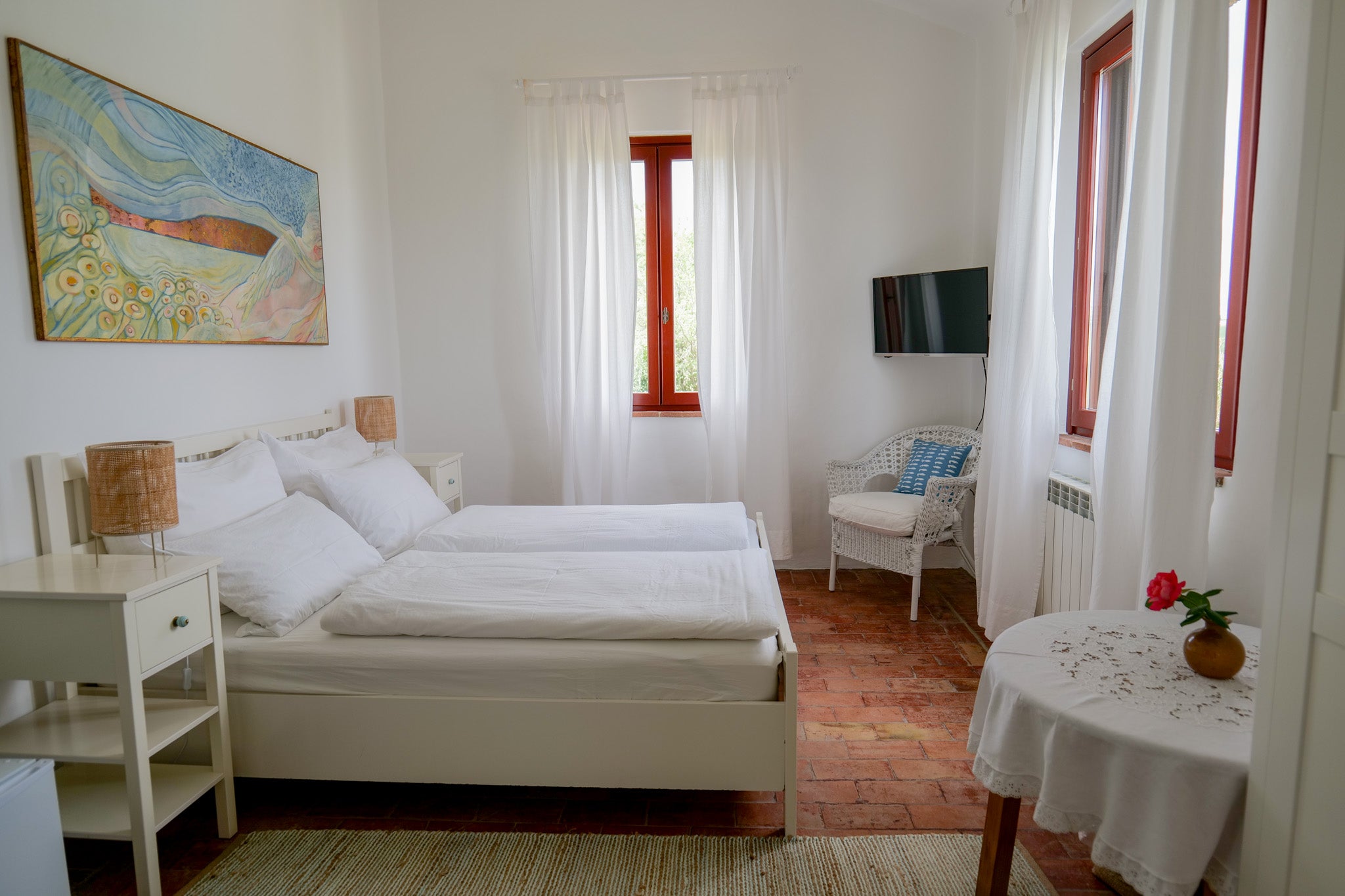 Camera matrimoniale con bagno, frigo, aria condizionata, riscaldamento, tv e wifi, zanzariere, vista panoramica